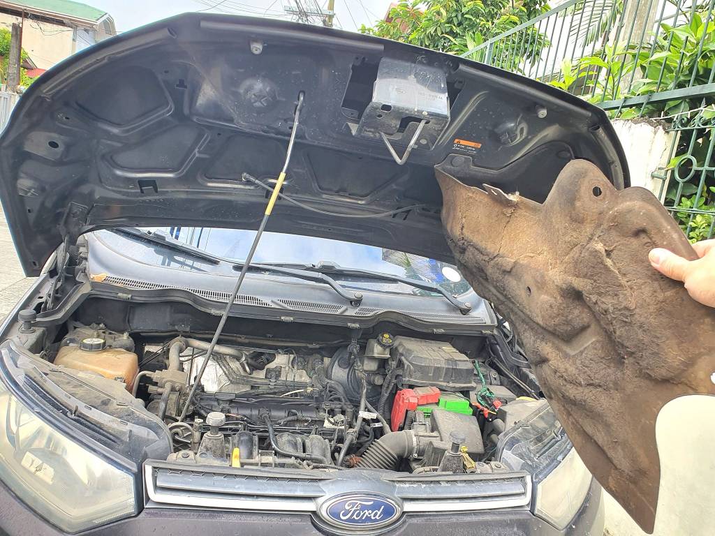 I was informed by fellow EcoSport owners that their Ambiente variants do not have a noise dampener installed. This means that there should be no issues if this part were removed and not replaced. There is however, a slight increase in engine noise as heard from the cabin, but still not loud enough to cause discomfort or issues. This EcoSport hood insulation foam can be purchased in local stores for 1800 pesos (about 35 USD in 2023) and it comes with supplied plastic clips for easy installation. I have yet to determine if I would be bothered with the increased noise as I prefer hearing the engine a bit more, particularly, since our EcoSport is a manual transmission.