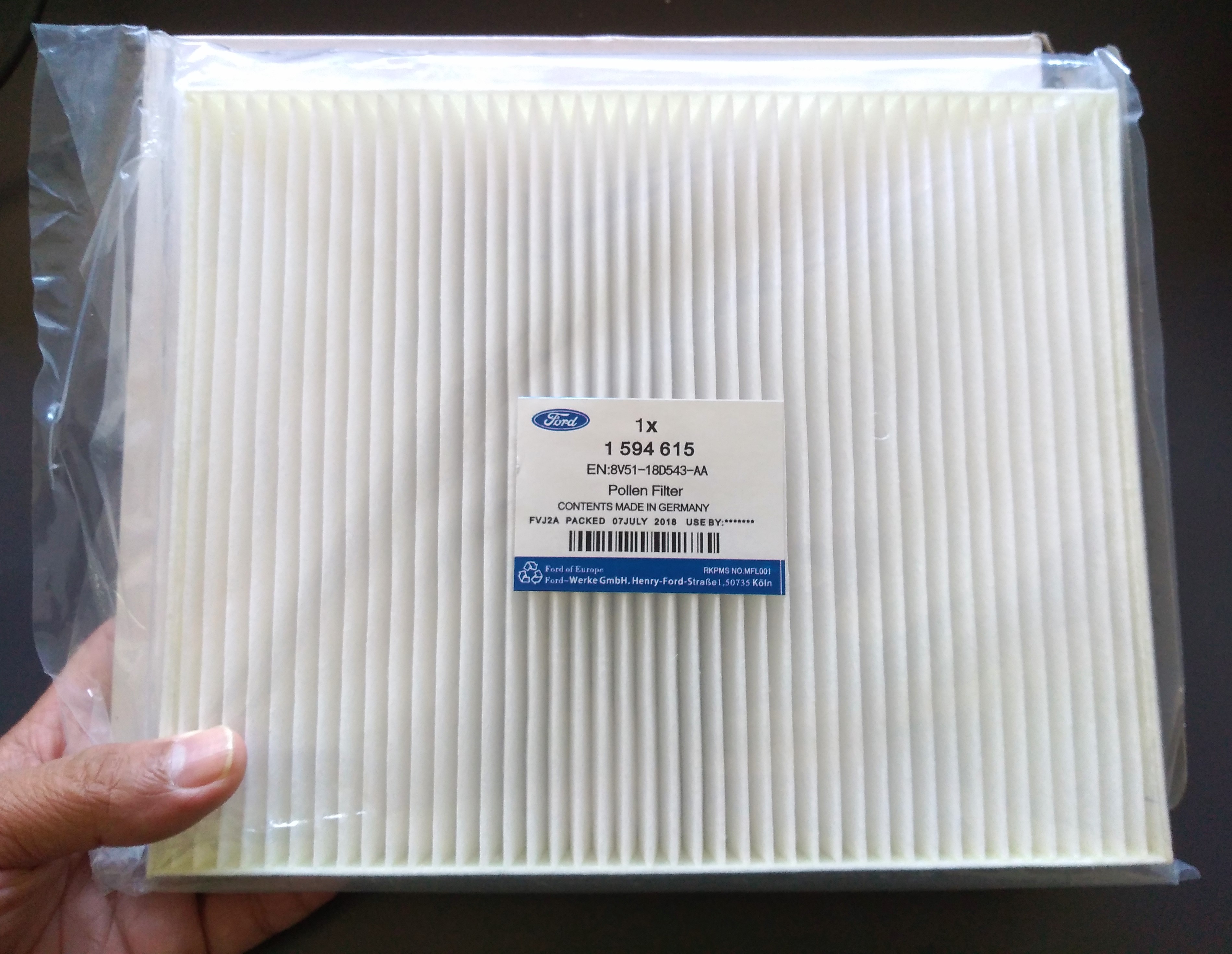 I have recently received a genuine Ford cabin air filter (or pollen filter) from one of our readers. The cabin air filter prevents dust particles from reaching the part of the air-conditioning system that cools the air (the evaporator). The filter is replaced every 20,000 km or as necessary. While non-Ford filters are also available, they may not offer the same amount of usable surface area (that’s why they are so cheap, they use less material). I am glad someone thought of sending me this, I do not need to buy one for the next scheduled maintenance of our EcoSport.